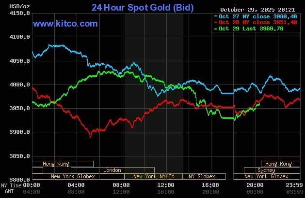 Chốt phiên giao dịch 29/10, giá vàng thế giới giao ngay giảm 22 USD xuống 3.929 USD một ounce. Tuy nhiên, sang phiên sáng 30/10, giá đảo chiều, tăng 31 USD lên 3.960 USD.