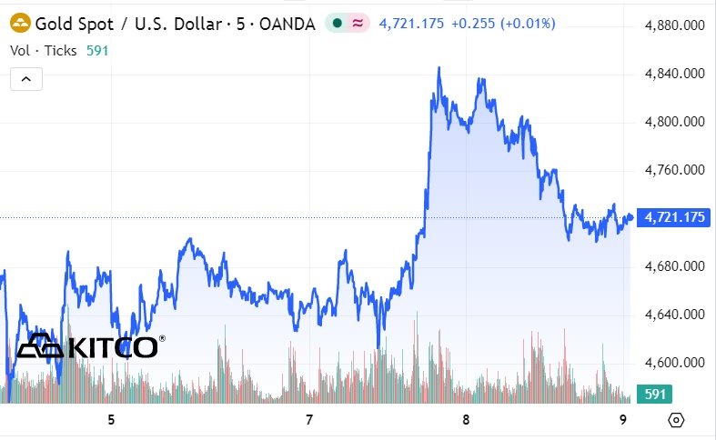 Sáng nay 9/4, lúc 7h7', giá vàng thế giới giảm mạnh so với đỉnh cao của ngày giao dịch hôm qua. Giá vàng giao ngay ở mức 4.700 USD/ounce, giảm hơn 100 USD so với mức đỉnh thiết lập hôm qua.