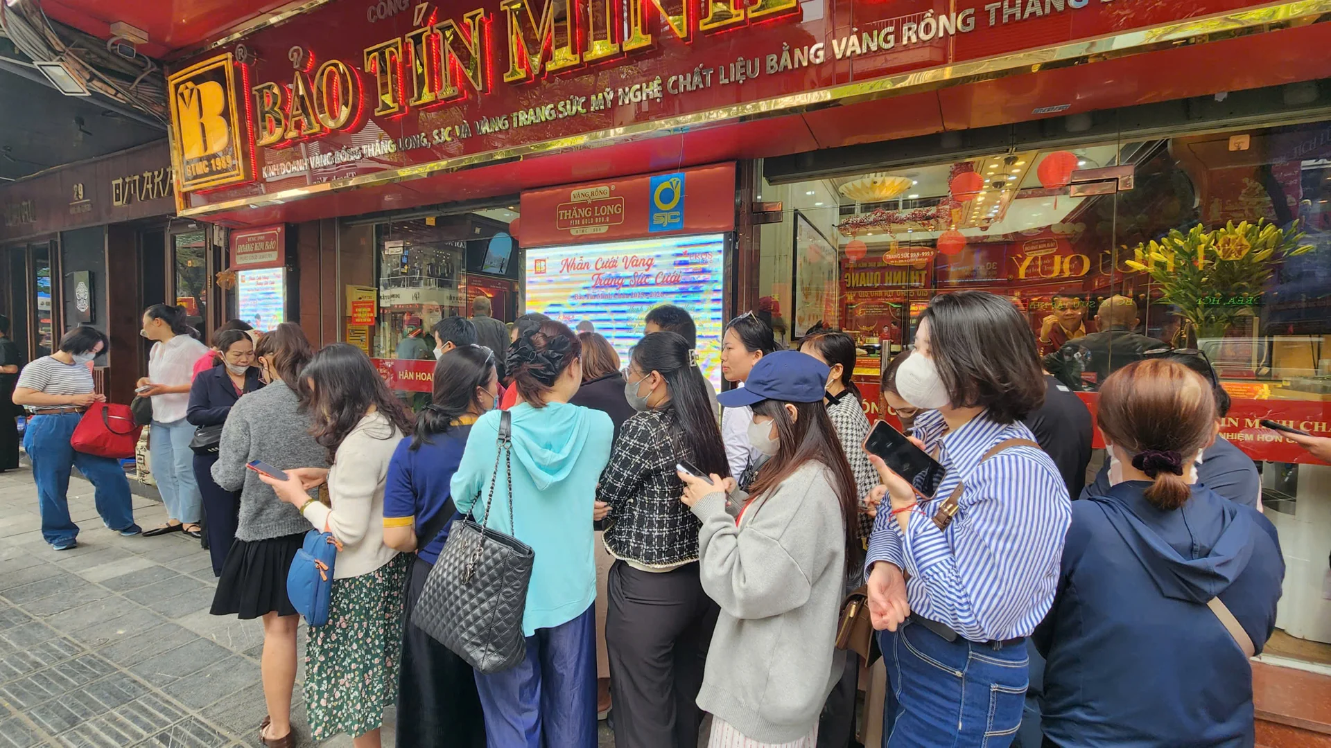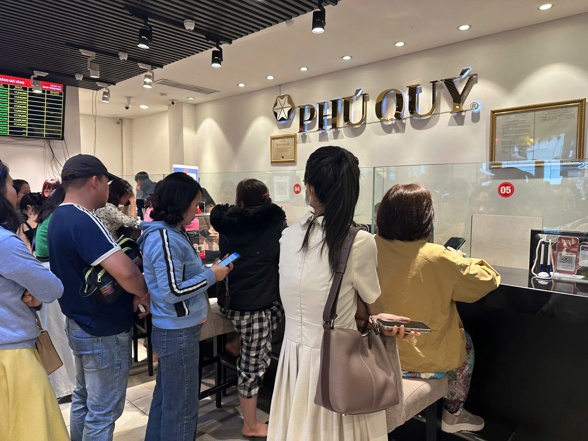 Ghi nhận của PV Dân Việt trong ngày 19/3, nhu cầu mua vàng tiếp tục tăng cao khi giá vàng hôm nay đồng loạt lao dốc. Người dân mua vàng xếp hàng từ sớm tại nhiều cơ sở kinh doanh vàng.