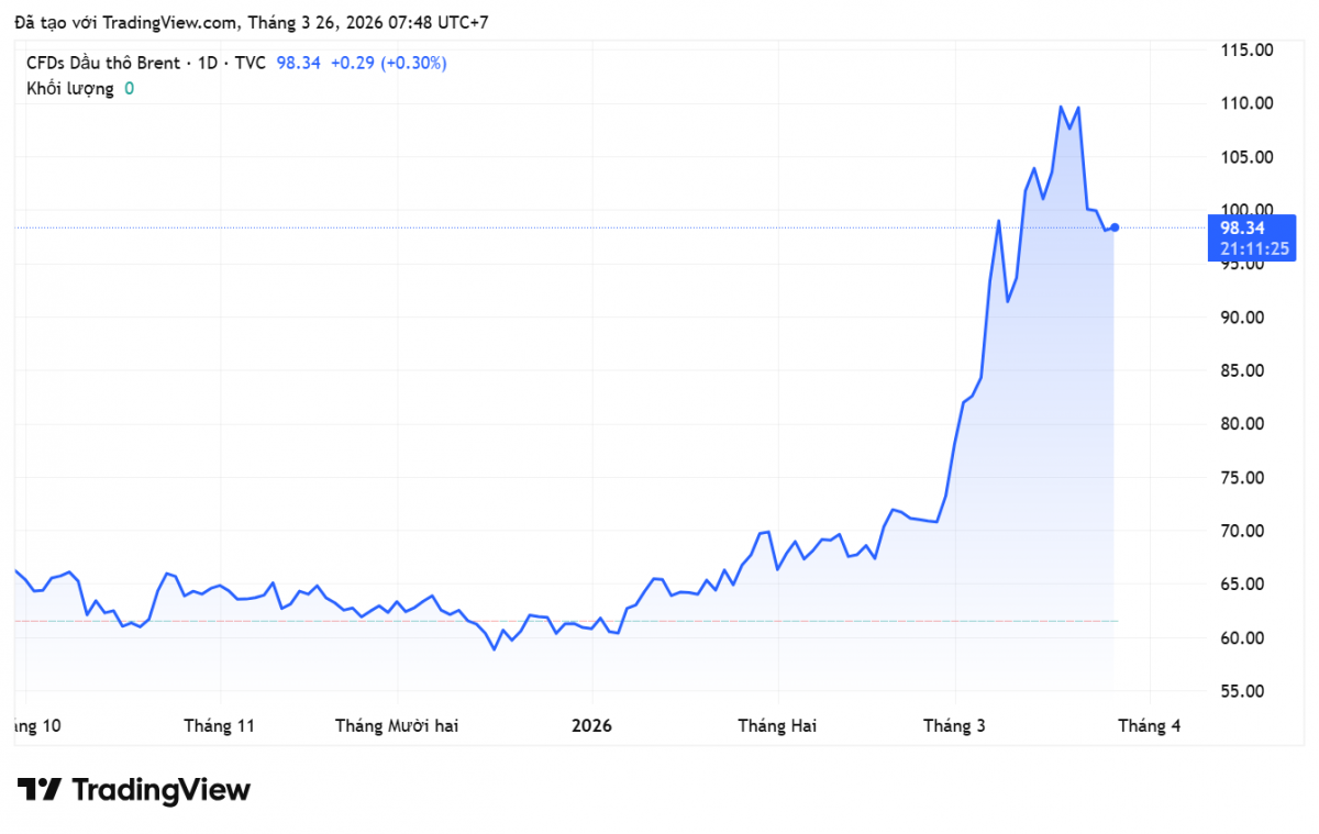 Biểu đồ giá dầu Brent hợp đồng tương lai – dữ liệu ngày 26/3/2026