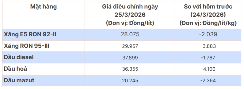 Giá xăng dầu hôm nay 26/3/2026: Giá xăng trong nước giảm mạnh; dầu thế giới tiếp tục giảm