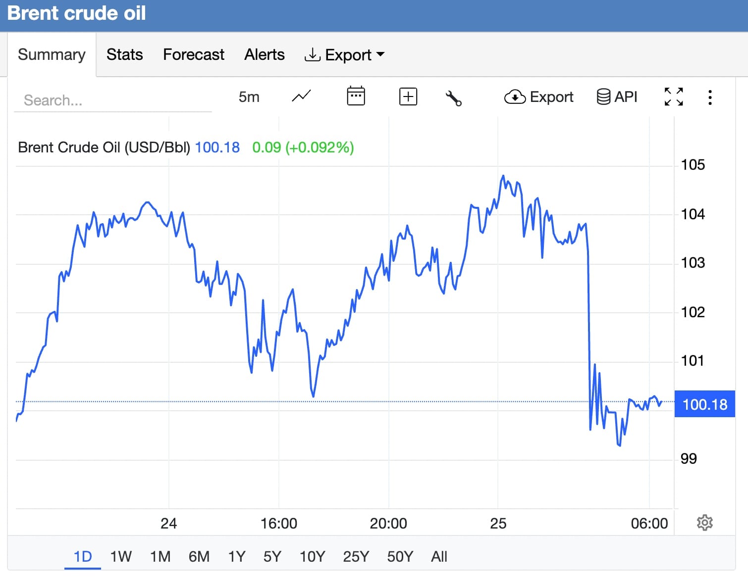 Trading Economics nhận định, giá dầu Brent đã phục hồi một phần sau đợt giảm mạnh 11% ở phiên trước đó, dù đà tăng vẫn bị hạn chế do tâm lý thị trường còn bất ổn. Các nhà đầu tư đang thận trọng cân nhắc khi căng thẳng địa chính trị leo thang.