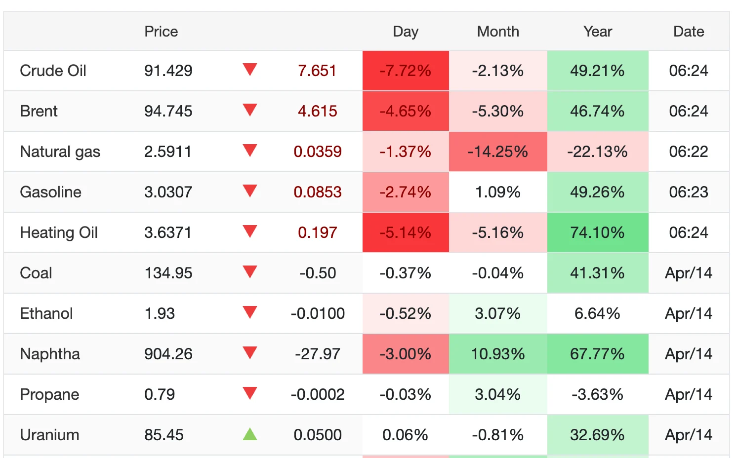 Mở cửa phiên giao dịch sáng nay ngày 15/4, giá dầu trên thị trường quốc tế đồng loạt đỏ sàn, các loại nhiên liệu đều giảm rất mạnh do tín hiệu tích cực từ thị trường Trung Đông.