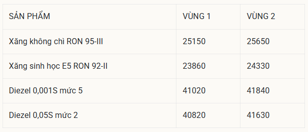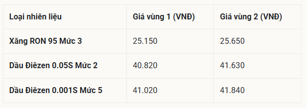 Giá xăng RON95-III không cao hơn 25.159 đồng/lít, giá Dầu diesel 0.05S không cao hơn 40.827 đồng/lít, giá dầu mazut 180CST 3.5S không cao hơn 23.331 đồng/kg.