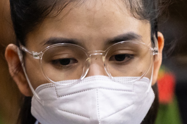 Ánh mắt mệt mỏi của Hằng Du Mục phiên xét xử buổi sáng (Ảnh: Viết Thanh)