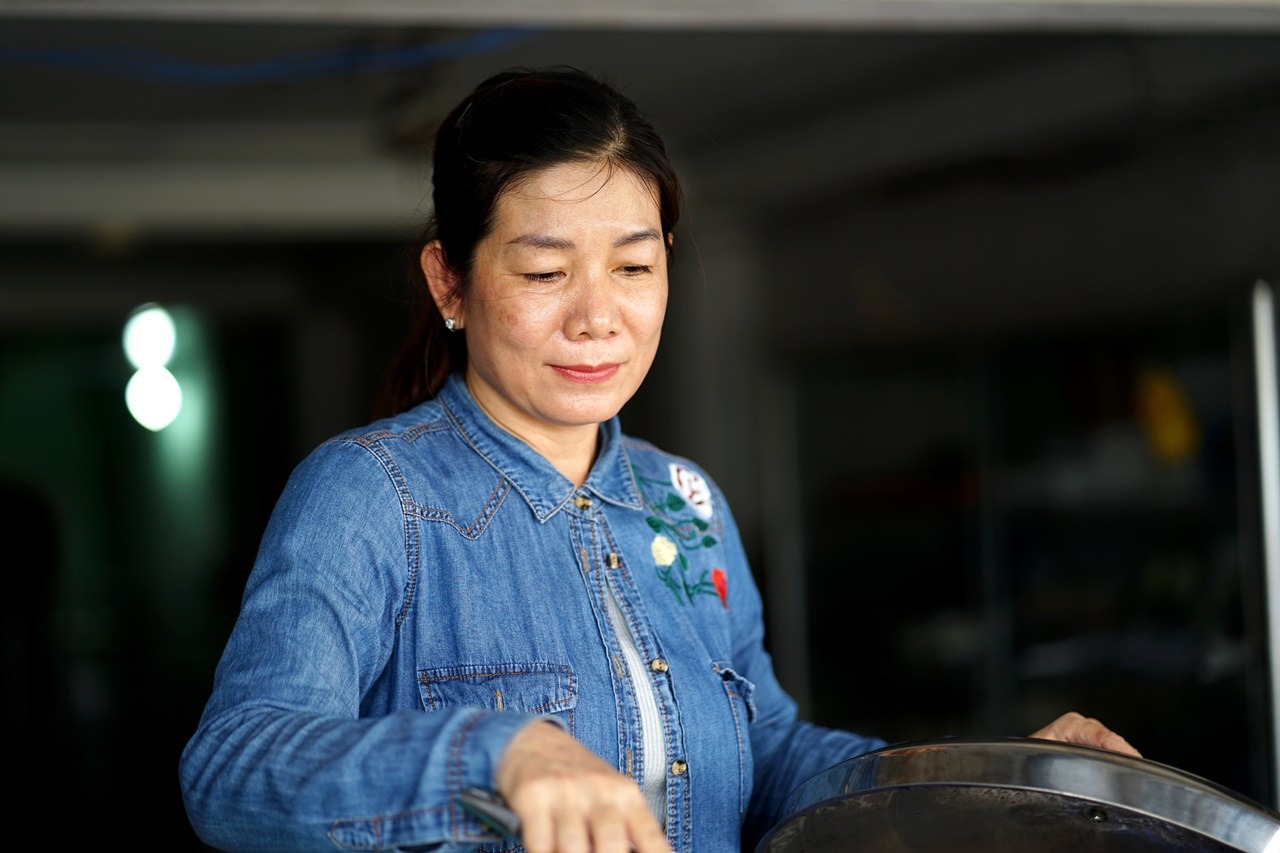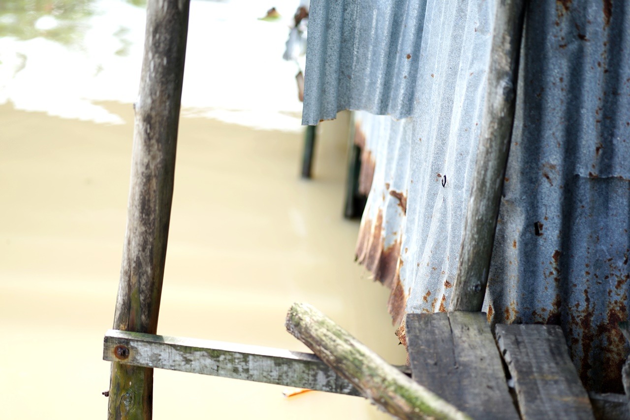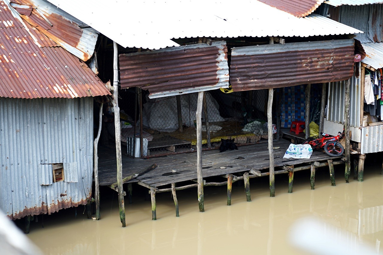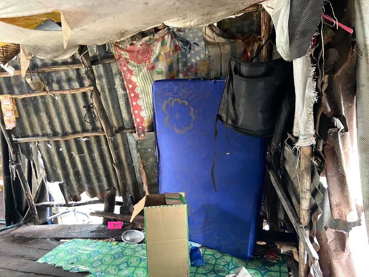 “Mẹ con nó ở đây bán lay lắt vậy đó, tháng 7 này kia người ta cho gạo thì lấy gạo về ăn. Có 2 đứa đi học thôi, nhưng thằng lớn học có mấy ngày nó cũng nghỉ à. Nó cũng buồn, cũng khóc dữ lắm chứ. Trời ơi con mất mà, dễ gì không buồn không khóc được. Nó ở dưới (ven bờ sông) 5-6 bữa rồi mới lên trên này. Còn trước đó toàn ở dưới đó không.”