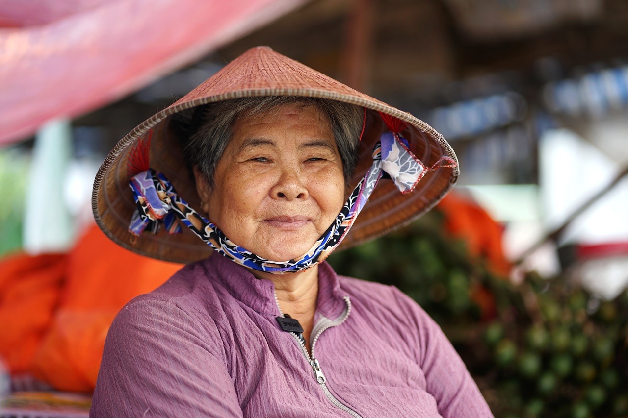 “Chị thấy mấy đứa nhỏ hay tới lui theo mẹ đi bán hàng hoài vậy á. Chị có gì thì chị cho cái nấy, cho bánh hoặc cho đồ cũ của mấy đứa nhỏ nhà chị. Nhiều khi nó đói bụng thì cũng đến xin, chị thấy thương thì cho vậy á. Mà mấy đứa cũng ngoan lắm, dễ thương.”