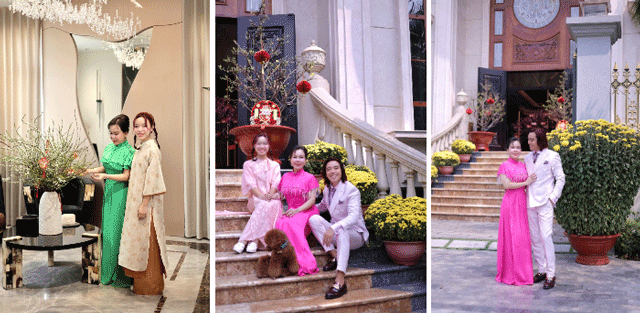 Theo Việt Hương, toàn bộ nội thất trong biệt thự đều do ông xã Hoài Phương trực tiếp lựa chọn và sắp xếp. Trong mỗi dịp Tết, nữ diễn viên thường chia sẻ hình ảnh gia đình bên căn biệt thự bề thế, thu hút sự quan tâm lớn của khán giả.