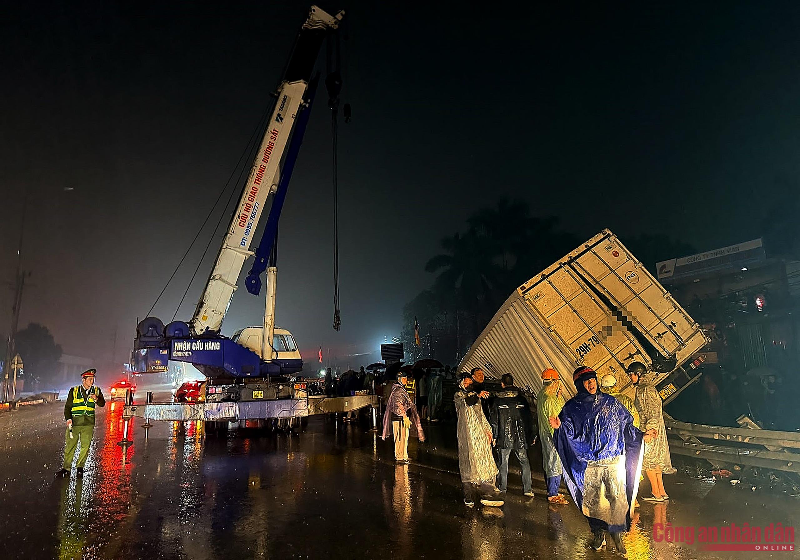 Vụ việc cũng khiến anh Nguyễn Văn T. tử vong tại chỗ; anh Đỗ Như H. (SN 1985) bị đa chấn thương và đang được cấp cứu tại Bệnh viện Đa khoa Nông nghiệp. Trong ảnh, lực lượng chức năng được triển khai xuống hiện trường cứu nạn các nạn nhân trong vụ tai:nan đồng thời điều tiết giao thông qua khu vực trên, chống ùn tắc.