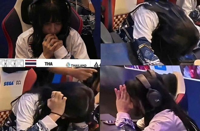 Sau trận bán kết, hình ảnh lan truyền trên mạng xã hội cho thấy nữ xạ thủ của đội tuyển Liên Quân Mobile nữ Thái Lan rơi vào trạng thái hoảng loạn rõ rệt, liên tục che mặt và né tránh ống kính máy quay.