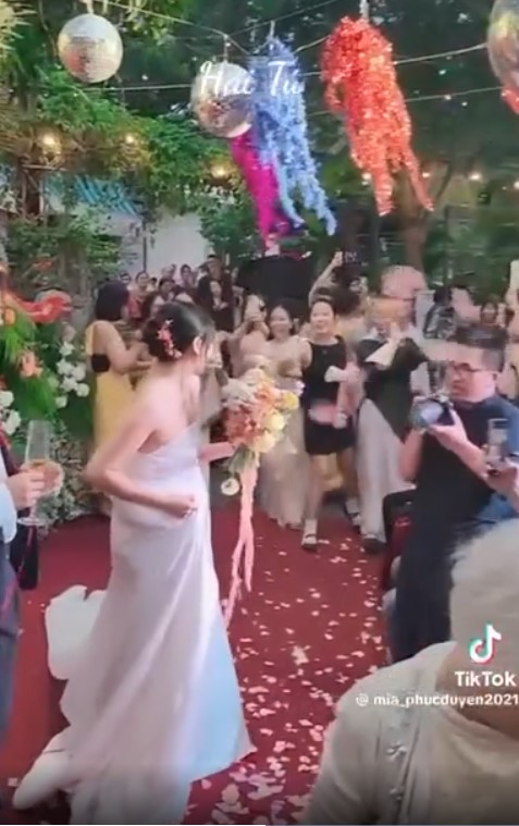 Hải Tú tung hoa, cười nói rộn ràng dù chỉ dự cưới 1 mình (Ảnh: Chụp màn hình)