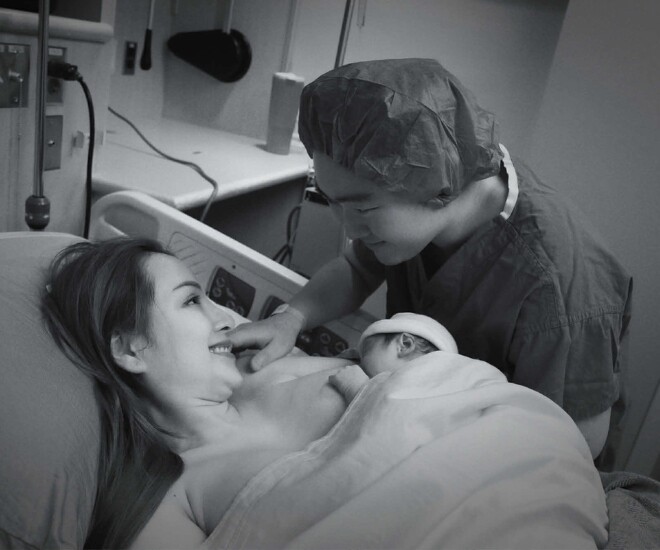 Cùng thời điểm, chồng Việt kiều của Diễm Hương chia sẻ khoảnh khắc của nàng hậu ở phòng sinh, kèm dòng trạng thái xúc động khi gia đình đón thêm thành viên mới. Anh viết: “Có những khoảnh khắc khiến trái tim người đàn ông trưởng thành thêm. Và hôm nay, khi nhìn thấy vợ ôm con trai của chúng tôi, cũng như tự tay cắt dây rốn con, ẵm con trên tay cho bú, thay tã lần đầu, tôi biết mình đã tìm thấy ý nghĩa thật sự của hai chữ gia đình”.