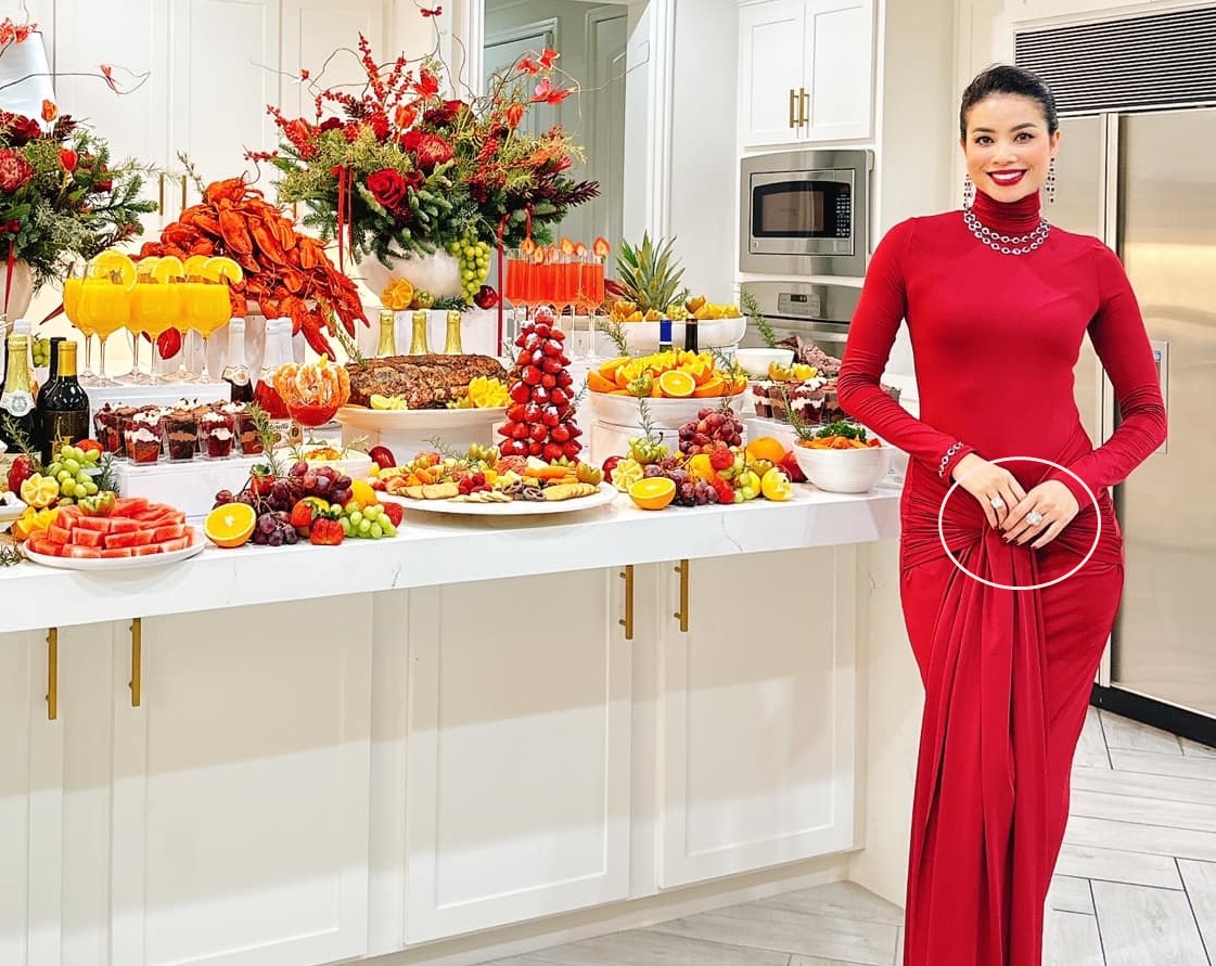 Phạm Hương đẹp rạng rỡ, sang trọng bên bàn tiệc tại gia.