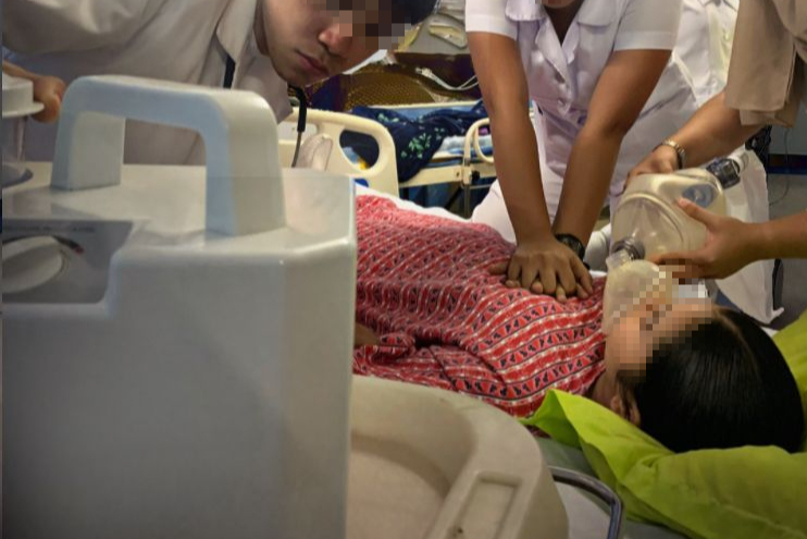 Người cha lập tức lái xe đưa cô bé đến thẳng phòng cấp cứu của Bệnh viện Phục hồi chức năng Đài Trung để cấp cứu. Sau đó, cô bé được chuyển đến Bệnh viện Nhi đồng thuộc Đại học Y khoa Trung Quốc (Đài Loan, Trung Quốc) để điều trị tiếp và được đặt máy hỗ trợ tuần hoàn ngoài cơ thể ECMO để duy trì sự sống.