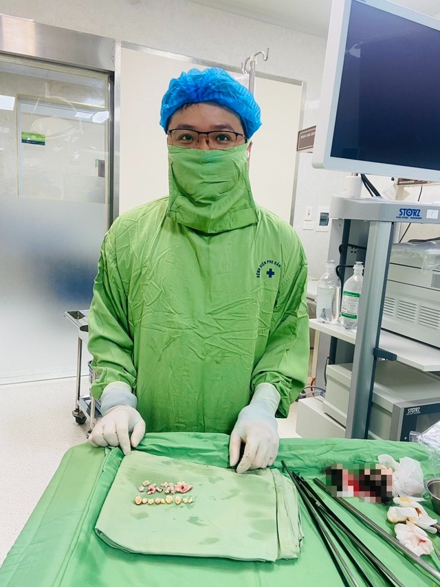Ca phẫu thuật được BSCK2 Đặng Khải Toàn, Phó Trưởng Khoa Ngoại tổng hợp, cùng ê-kíp đã nhanh chóng thực hiện. Quá trình phẫu thuật, ekip ghi nhận u quái b:uồng tr:ứng phải (kích thước 15 cm bị vỡ, trong ổ bụng bệnh nhân có nhiều dịch mủ lẫn tóc và răng. Ngoài ra, b:uồng tr:ứng trái cũng có một khối u khác, đường kính 7 cm.