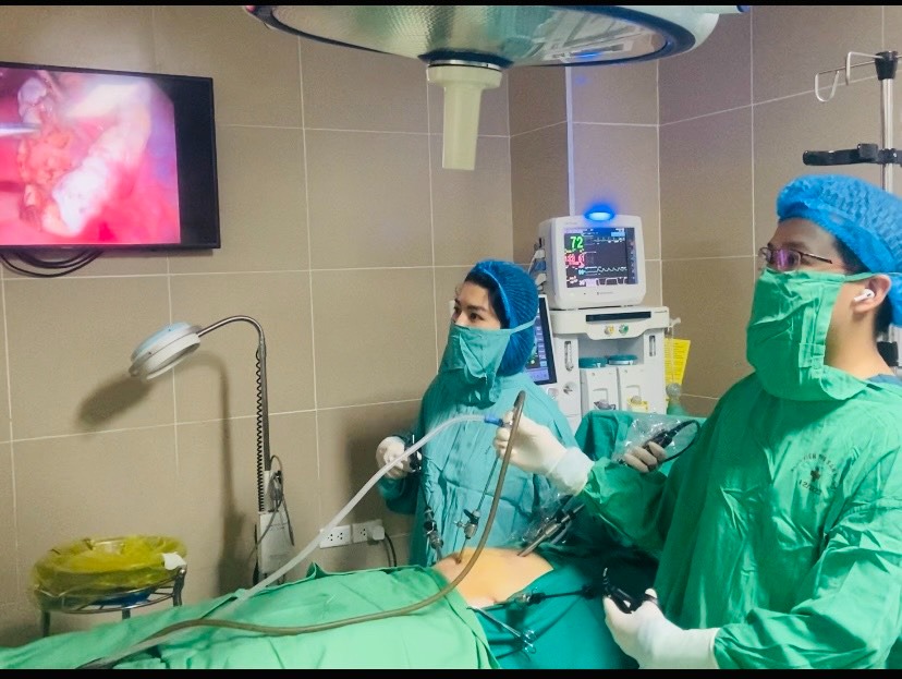 Bệnh nhân là Nguyễn Thị N., sinh năm 2004 quê ở Quảng Trị, mới kết hôn và đang có kế hoạch sinh con. Thời gian gần đây chị N. có biểu hiện tức bụng, bụng béo nhanh. Đi khám được chẩn đoán u bì b:uồng tr:ứng (u quái b:uồng tr:ứng) to hơn 10 cm và được bác sĩ chỉ định mổ nội soi.