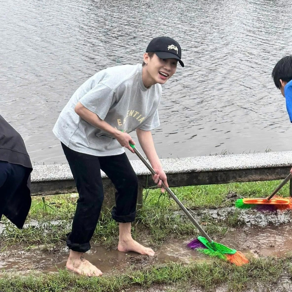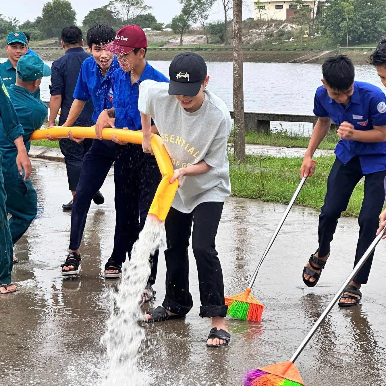 Khi đi thiện nguyện, Jack đội mũ lưỡi trai, diện trang phục giản dị. Anh tích cực cùng đội ngũ tình nguyện dọn dẹp những vùng bị ảnh hưởng nặng.