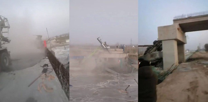 Sự việc xảy ra lúc 17h46 ngày 2/2 tại công trường xây dựng cầu đường sắt ở thành phố Diêm Thành, tỉnh Giang Tô. Trong video tại hiện trường, một đoạn dài khoảng 95 m của công trình bất ngờ đổ sập khi các công nhân đang làm việc.