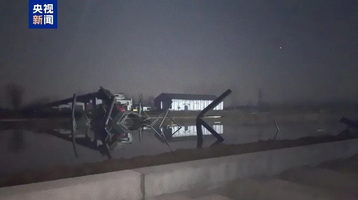 Hình ảnh do Đài Truyền hình Trung ương Trung Quốc (CCTV) phát sóng cho thấy một phần lớn cây cầu đang thi công bị xoắn gãy, nằm la liệt trên mặt đất, trong khi máy móc hạng nặng và lực lượng cứu nạn khẩn trương dọn dẹp đống đổ nát.