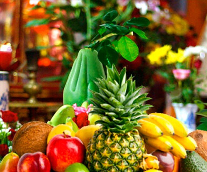 Thành tâm sửa biện hương hoa, lễ vật, trà quả và các thứ cúng dâng, bày lên trước án