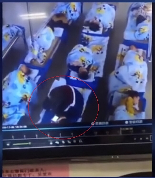 Thời gian trước, một đoạn video từ camera an ninh đã gây chấn động khi ghi lại cảnh tượng trong giờ nghỉ trưa tại một trường mẫu giáo ở Phật Sơn, Trung Quốc. Trong clip, một bé gái 5 tuổi đang cố gắng ngủ, nằm lăn lộn trên giường. Cô giáo họ Từ, 36 tuổi, đã đến gần, ngồi lên đầu bé và gác chân lên vai em trong khoảng ba phút. Lúc này, cô chỉ chăm chú vào điện thoại mà không để ý đến phản ứng của học sinh.