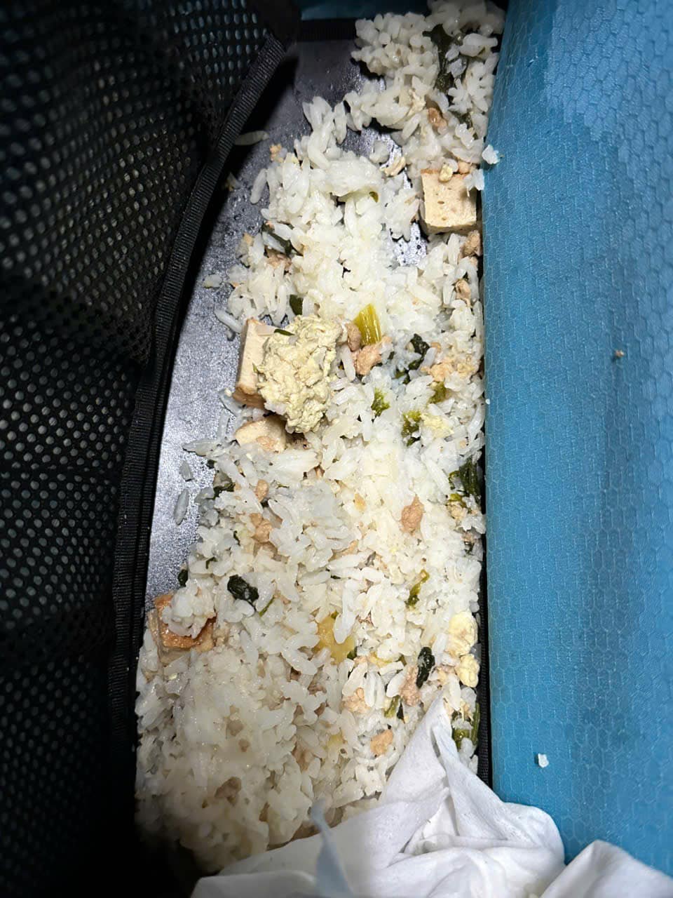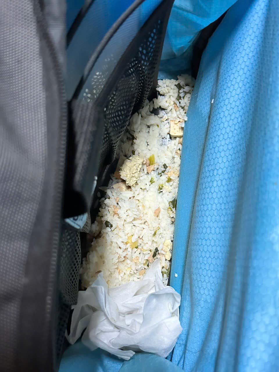 Con của vị phụ huynh bị các bạn trêu đùa bằng cách đổ cơm vào cặp.