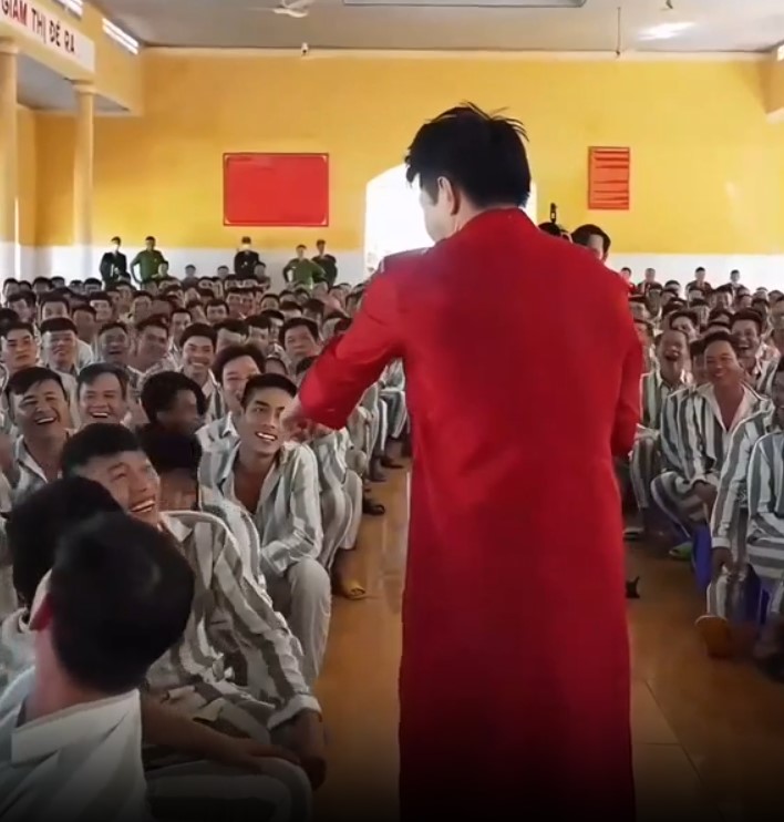 Hình ảnh nam nghệ sĩ biểu diễn trong trại giam
