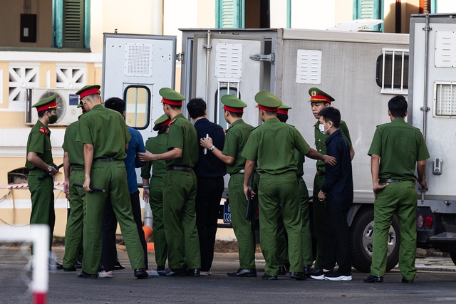 Nhiều bị cáo đã xuống xe để vào nơi xét xử (Ảnh: Viết Thanh)