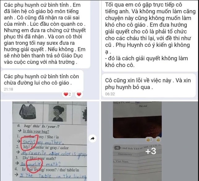 Theo thông tin từ phụ huynh, giáo viên N. bị cho là đã sửa bài thi của học sinh theo hướng biến đáp án đúng thành đáp án sai để chấm điểm thấp. Một số bài làm được cho có dấu hiệu bị tác động như thêm nét vào chữ cái, hoặc bổ sung từ vào phần trả lời khiến kết quả trở nên sai lệch.