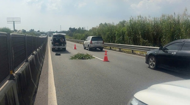Phát hiện sự việc, các tài xế hoảng hốt đánh lái chuyển sang làn đường số 2 để tránh, đồng thời nhanh chóng trình báo cho lực lượng chức năng.