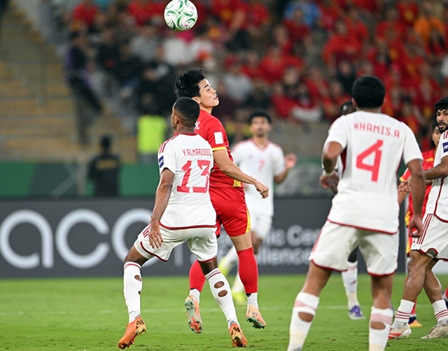 Không chỉ dừng lại ở vai trò kiến tạo, Đình Bắc còn tự mình ghi tên lên bảng tỷ số. Từ một quả tạt bên cánh, anh thực hiện cú đánh đầu ngược đầy tinh tế, khiến thủ môn U23 UAE không kịp phản xạ.