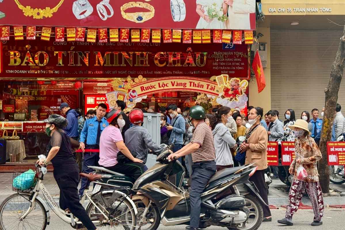 Giá vàng trong nước duy trì ở vùng cao, song ghi nhận sáng nay (ngày 3.3) tại tuyến phố Trần Nhân Tông, Mai Hắc Đế (Hà Nội) cho thấy nhiều người dân vẫn kiên nhẫn xếp hàng chờ giao dịch tại các cửa hàng kinh doanh vàng.