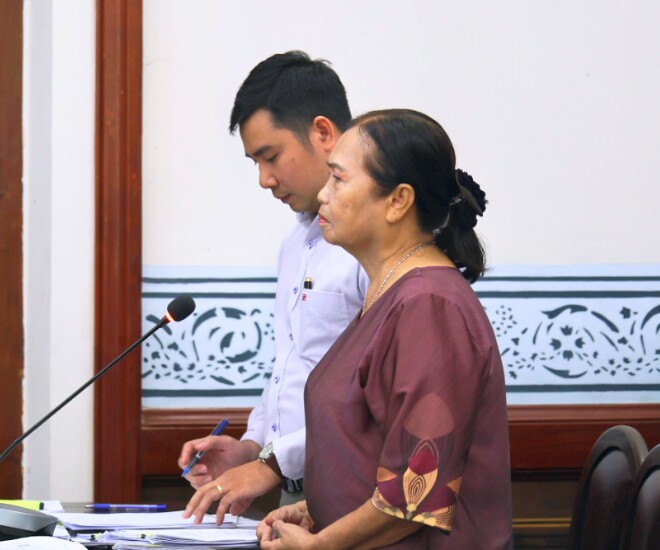 Bà Sáng - mẹ kế của cố diễn viên Đức Tiến có mặt tại tòa.