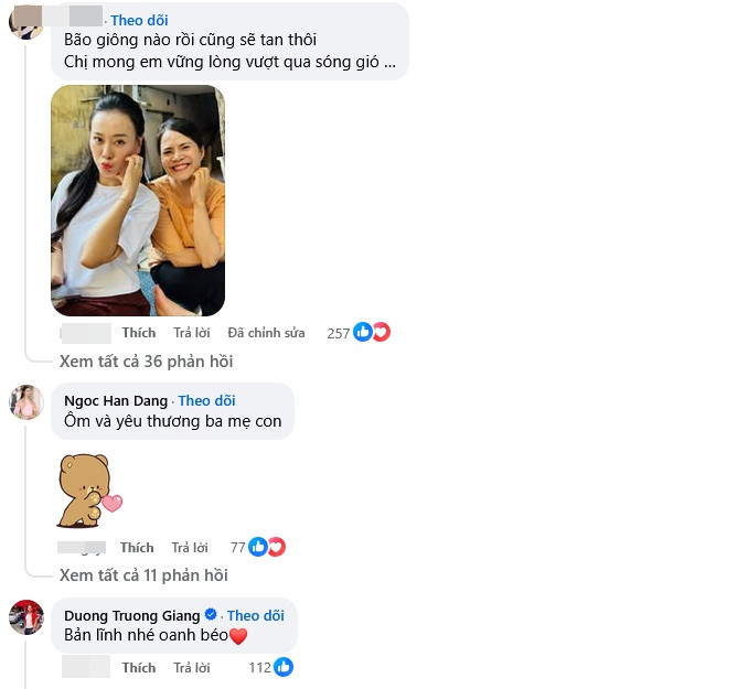 Dưới bài đăng, hàng loạt đồng nghiệp thân thiết đã để lại bình luận động viên nữ diễn viên.