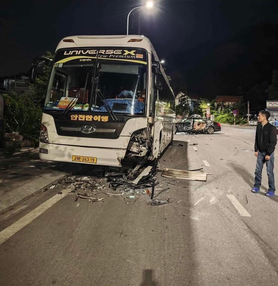 Cú đâm khiến chiếc Mercedes xoay ngang, dừng lại phía trước đầu xe khách, phần thân và đầu xe hư hỏng nặng bên phía lái. Hai người trên xe Mercedes bị thương nặng, được đưa đi cấp cứu nhưng người ngồi sau đã tử vong.
