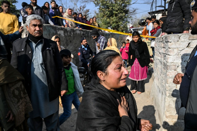 Người thân của các nạn nhân tập trung bên ngoài ngôi nhà bị nổ. Ảnh: AP