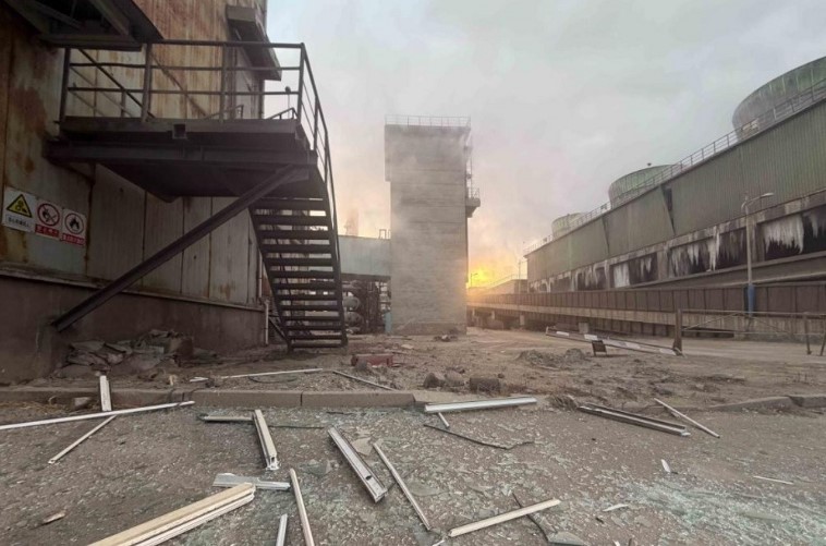 Một góc khuôn viên nhà máy thép sau khi vụ n:ổ xảy ra. Ảnh: Xinhua
