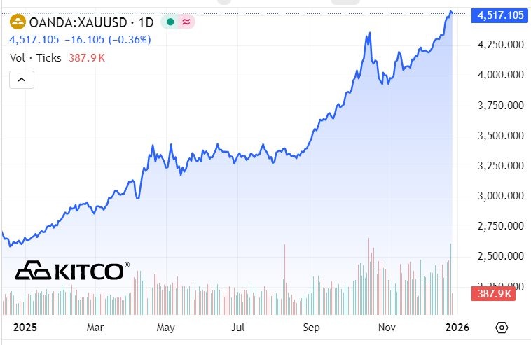 Những ngày cuối năm 2025, thị trường kim loại quý trở nên nóng hơn bao giờ hết. Sau khi vượt mốc lịch sử 4.500 USD/ounce rồi quay đầu điều chỉnh, giá vàng thế giới biến động mạnh, kéo theo những nhịp lên xuống nhanh của vàng trong nước.