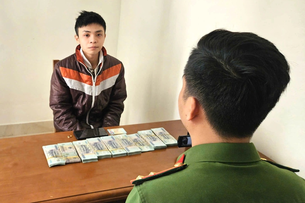 Đối tượng Sang và số tiền bán tài sản trộm cắp của chị H. (Ảnh: Công an Đà Nẵng).