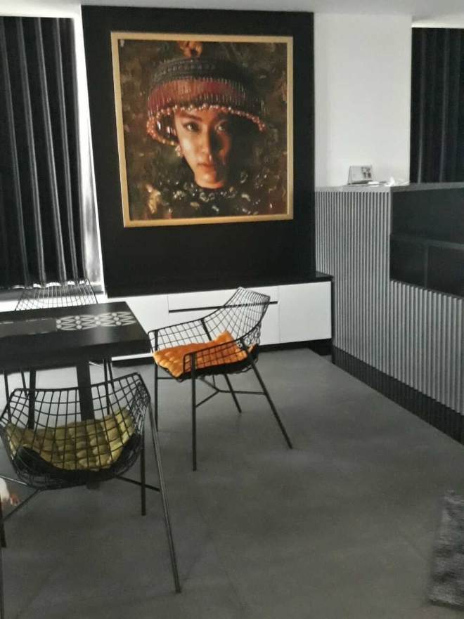 Căn hộ nằm ở khu chung cư cao cấp có diện tích rộng 400m2 và có 2 tầng. Căn penthouse được cô xây dựng theo phong cách hiện đại và tông màu đen - trắng chủ đạo. Ở khu vực tầng 1 có phòng ăn, nhà bếp và phòng khách rộng rãi. Trên sân thượng, cô trồng nhiều hoa và cây cảnh tạo không gian thoáng cho căn nhà.
