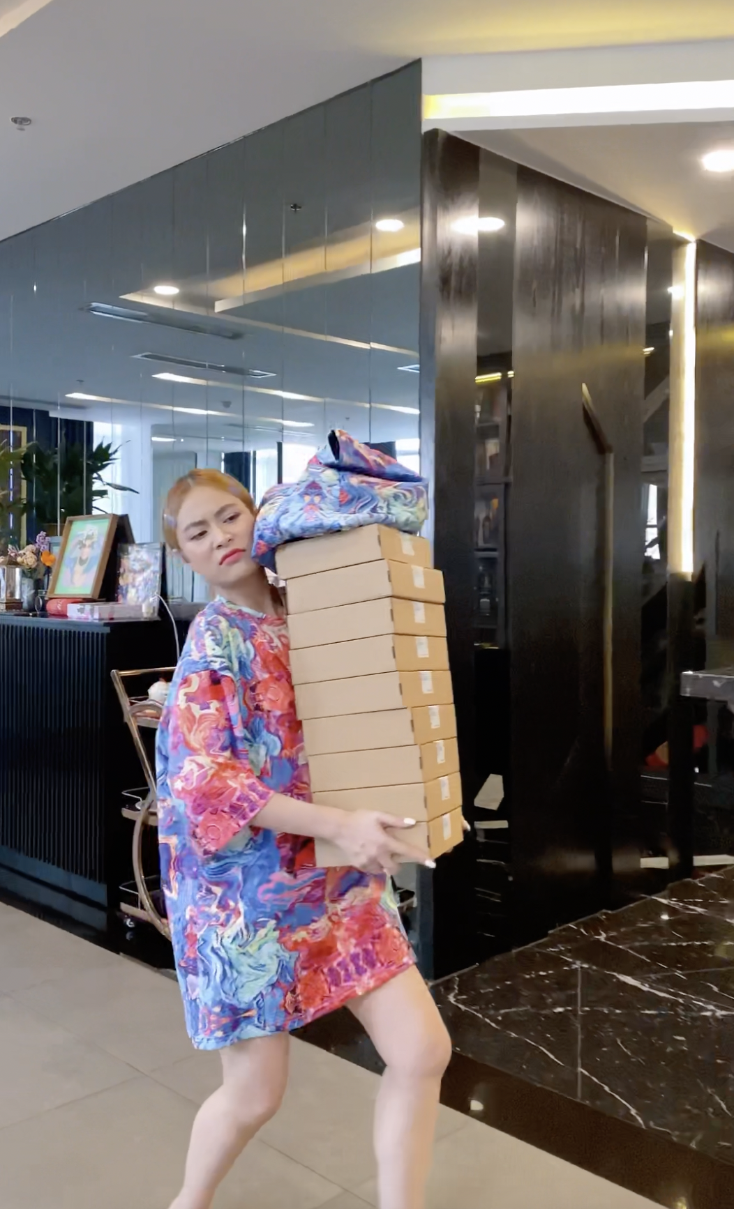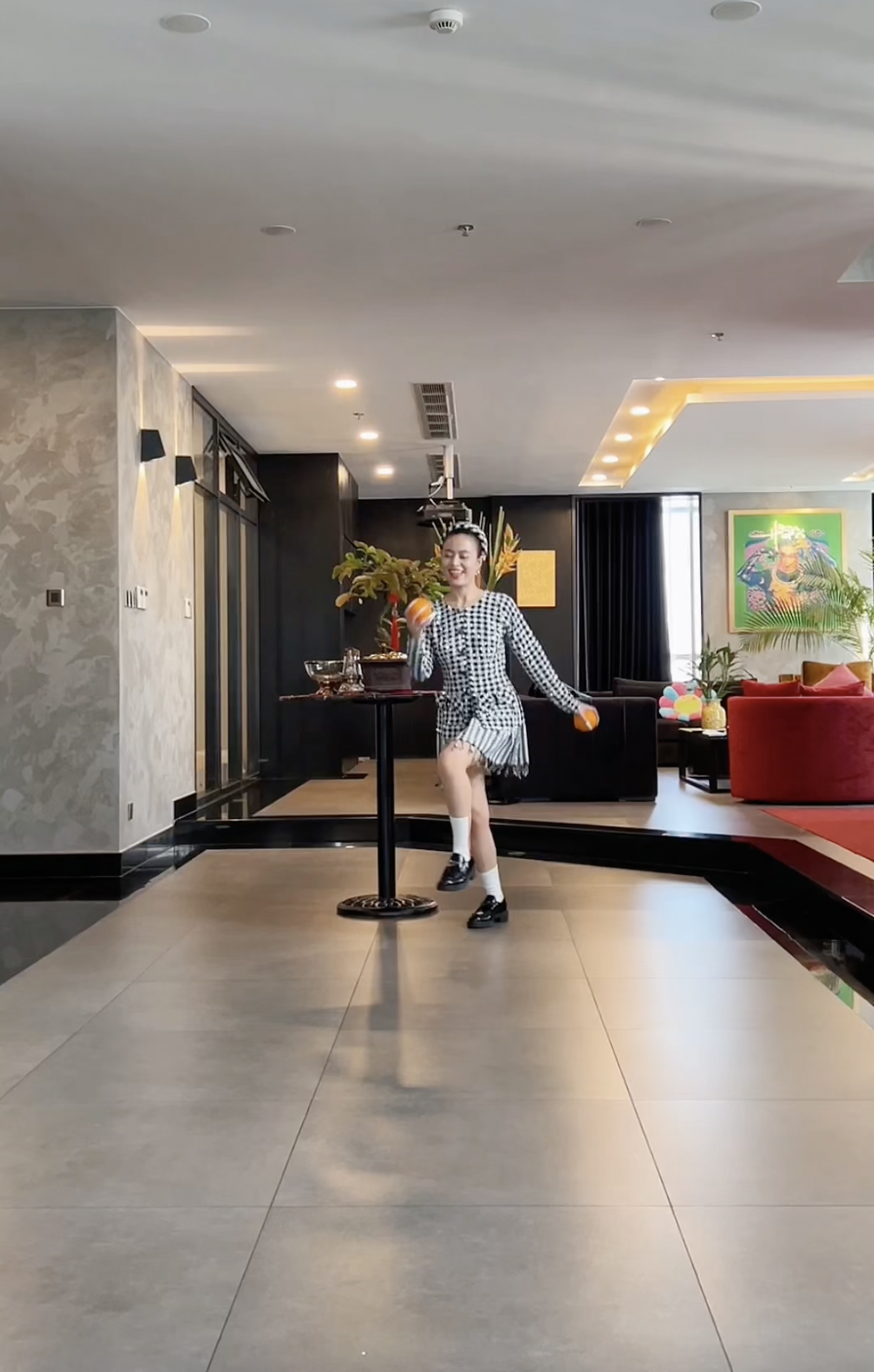 Cần gì đi đâu xa, Hoàng Thuỳ Linh tự đu trend trong chính căn penthouse của mình.