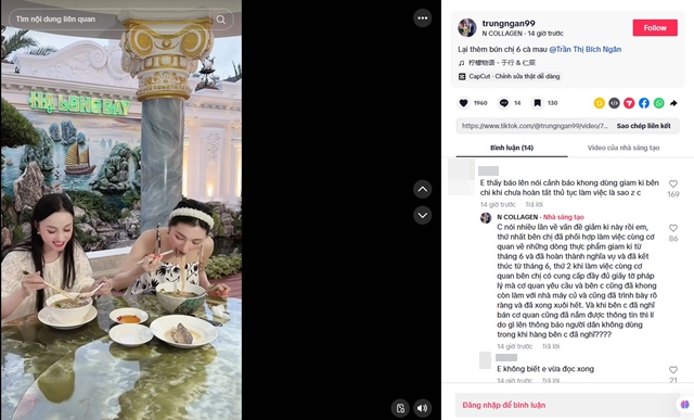 Trước thông tin trên, trên nền tảng TikTok, tài khoản chính chủ “N COLLAGEN (tick xanh)” – trungngan99 vẫn vô tư đăng tải video mới, đồng thời để lại bình luận giải thích trước loạt thắc mắc của người tiêu dùng.