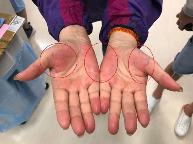 - Lòng bàn tay đỏ bất thường: Nếu phần trung tâm lòng bàn tay hoặc toàn bộ bàn tay ửng đỏ, xuất hiện các đốm hoặc vệt như mạng nhện, hãy cẩn trọng. Khi gan suy giảm chức năng, khả năng chuyển hóa hormone bị rối loạn, làm mao mạch giãn nở và gây đỏ da. Nếu dấu hiệu này kéo dài nhiều tuần, đặc biệt kèm mệt mỏi hoặc vàng da, bạn nên đi kiểm tra gan sớm.