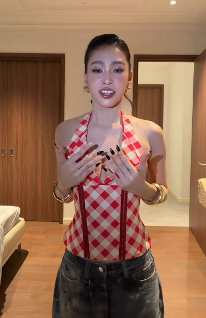 Chị đẹp cũng kết hợp cùng quần jeans ống rộng khoe giao diện nóng bỏng khác hoàn toàn hình ảnh kín đáo trước đây. Nữ ca sĩ được nhận xét sắc vóc ngày càng thăng hạng kể từ khi tham gia Chị đẹp đạp gió rẽ sóng.