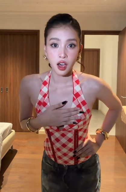 Mới đây, Hoa hậu Tiểu Vy cũng đăng tải hình ảnh diện chiếc áo tương tự Ngọc Trinh. Nhờ vòng 1 đầy đặn nên khi mặc chiếc áo ôm sát diện mạo của nàng hậu như nâng tầm nhan sắc. Dưới bình luận rất nhiều người khen ngợi Tiểu Vy thay đổi phong cách nữ tính thanh lịch chuyển sang cá tính, sang chảnh.