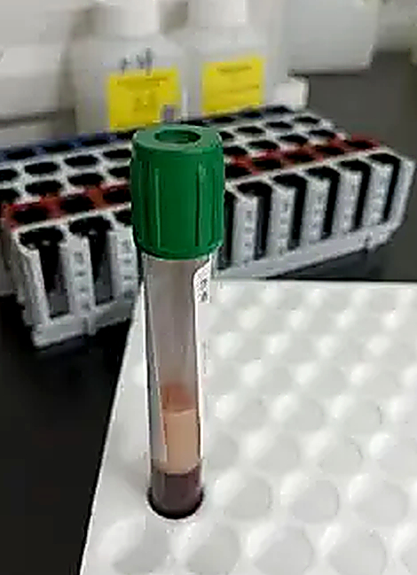 Thay vì màu đỏ tươi như bình thường, máu của người đàn ông này có màu trắng hồng và nhớt, nổi váng như váng dầu. Cuối cùng được chẩn đoán viêm tuỵ cấp.