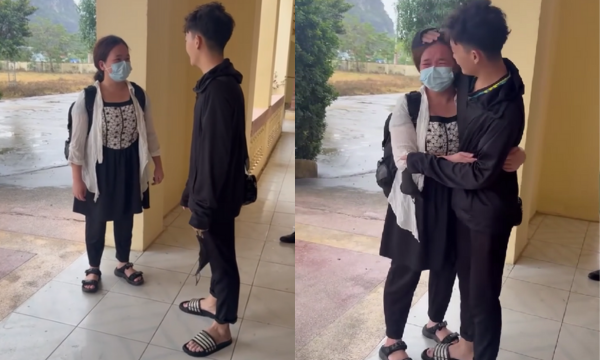 Trong giây phút gặp lại người thân sau 10 năm bị thất lạc, chị Dế vô cùng xúc động, ôm chặt em trai của mình.