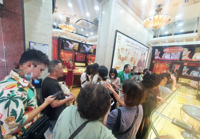Người dân vẫn tiếp tục xếp hàng mua vàng dù giá vàng đang ở mức cao. (Ảnh: Thời báo Văn học Nghệ thuật)