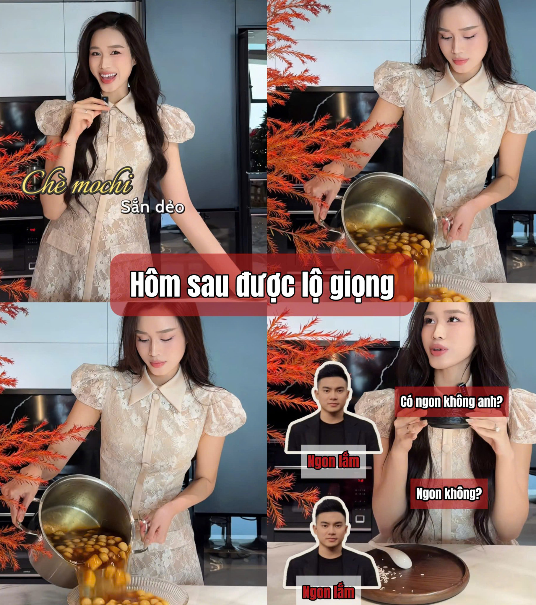 Ngoài các video hướng dẫn chị em cách làm đẹp, người đẹp xứ Thanh cũng tích cực lăn xả vào bếp, làm các món ăn vặt để phục vụ ông xã. Mới nhất, cô trổ tài làm món chè Mochi sắn dẻo.