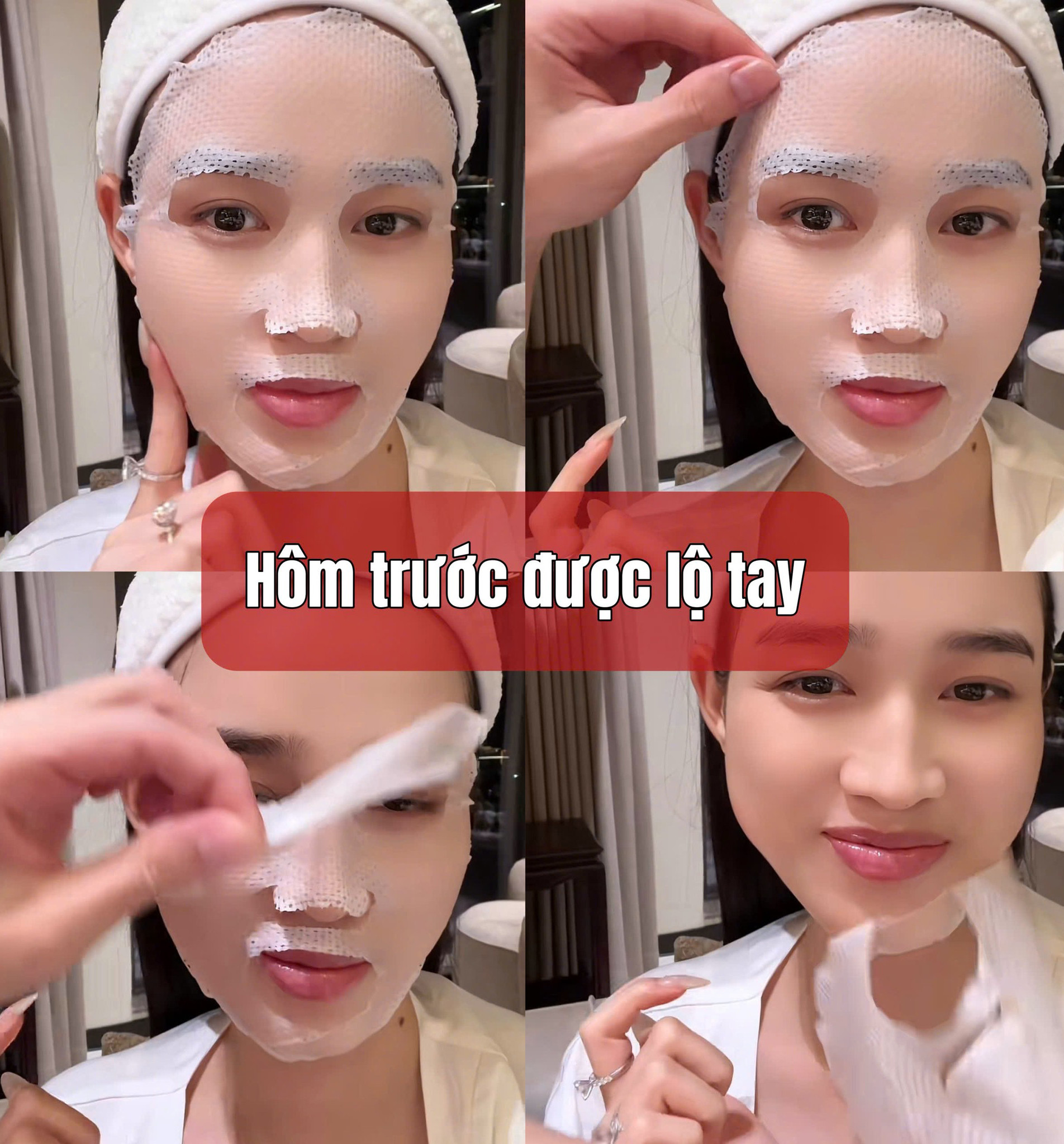Cụ thể, cô chia sẻ quá trình skincare và chồng thiếu gia chỉ lộ đôi bàn tay khi hỗ trợ vợ chăm sóc sắc đẹp. Anh thể hiện sự cưng chiều "nóc nhà" khi học cách gỡ mặt nạ. Vì còn thiếu kinh nghiệm nên sau đó Đỗ Hà còn "cầm tay chỉ việc" cho chồng.